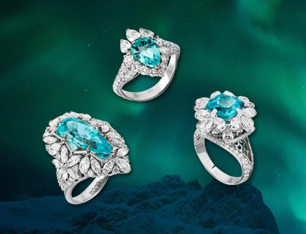 Центром коллекции выступает великолепный турмалин Параиба, называемый ювелирами «камнем высокого полета» за ту скорость, с которой его цена поднимается на аукционах. Открытый совсем недавно, он обладает поистине неземной красотой и удивительным свойством излучать фантастический голубоватый ореол.