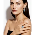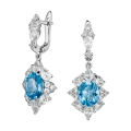 В центре композиции сияют ярко-голубые топазы общим весом 12,32 карата. Их глубина и прозрачность напоминают небесное отражение во льду. Самоцветы исключительного качества подобраны в идеальном созвучии, а филигранная огранка подчёркивает их внутреннее свечение, превращая сияние в живое движение.