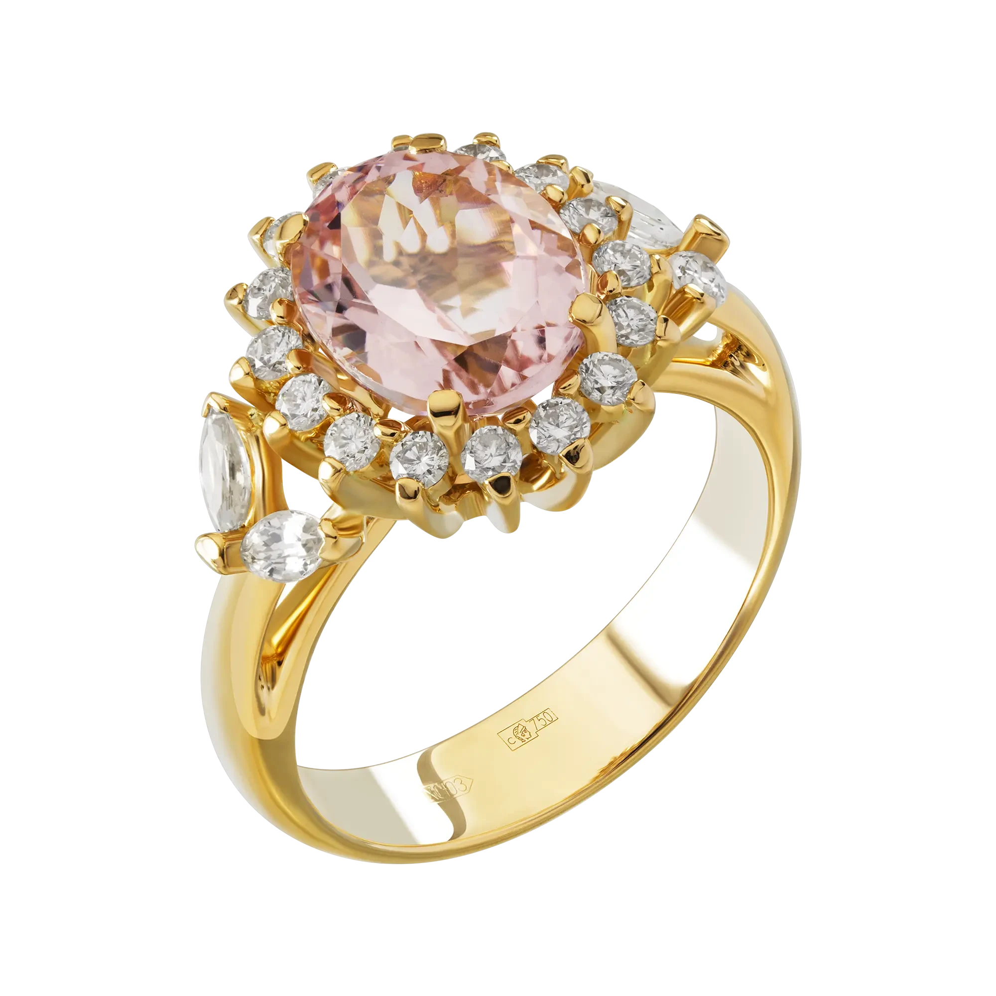 Главенствует над этой эстетической роскошью редчайший морганит – самоцвет, снимающий стресс и гармонизирующий внутреннее состояние. Идеальную огранку ослепительного бразильского минерала волшебно подчеркивают искрящиеся лепестки из благородных бриллиантов.