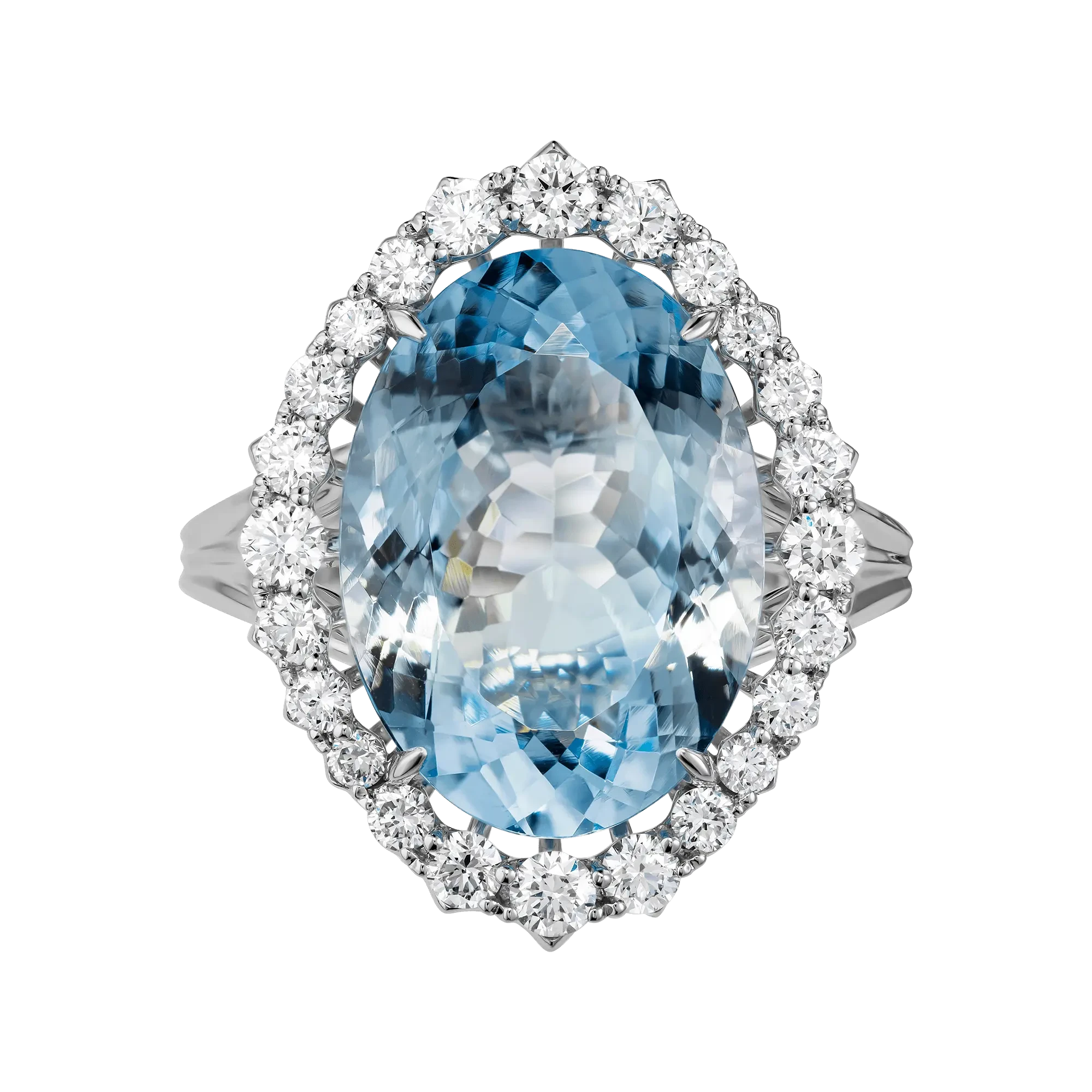 Оправа из белого золота, расшитая бриллиантами, подчёркивает кристальную чистоту и внутреннее свечение аквамарина. Свет, скользящий по его граням, создаёт иллюзию движения – будто кольцо хранит в себе вечный трепет океана.