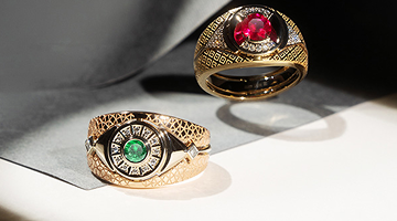 Основой потрясающего дизайна стала изящная оправа, иллюстрирующая, что высокие чувства должно обязательно сопровождать солнечное золото, тепло которого будет постоянно поддерживать огонь отношений.