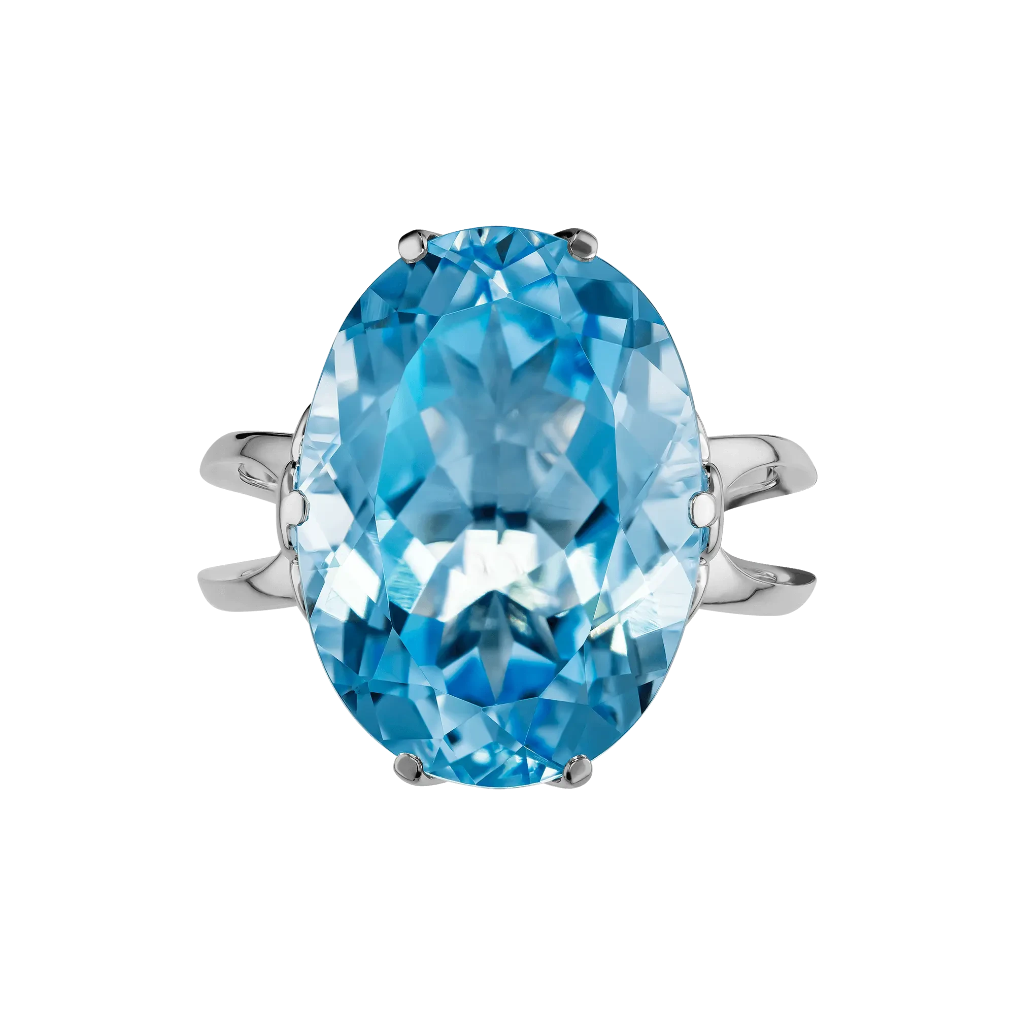 Лаконичная оправа из белого золота выстроена так, чтобы сохранить ощущение лёгкости. Чистая геометрия линий и открытая посадка камня позволяют топазу максимально раскрыть свою световую природу. Металл не доминирует — он поддерживает, усиливает и подчёркивает естественную красоту самоцвета.