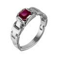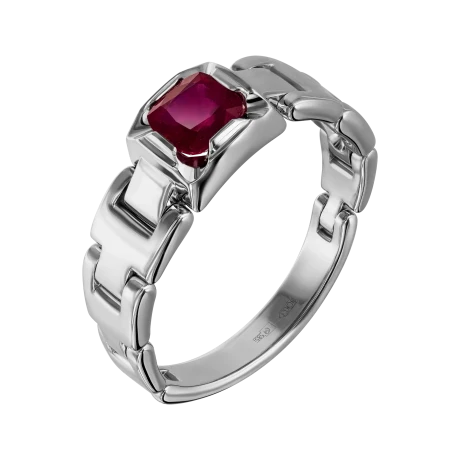Все в этом брутальном украшении из белого золота излучает уверенность: лаконичный, но, вместе с тем интересный дизайн, заключающийся в гибкости оправы, удобно садящейся на палец и главный акцент – безупречный рубин, еще много тысячелетий назад включенный в элитный и, потому, короткий список драгоценных камней первого порядка.