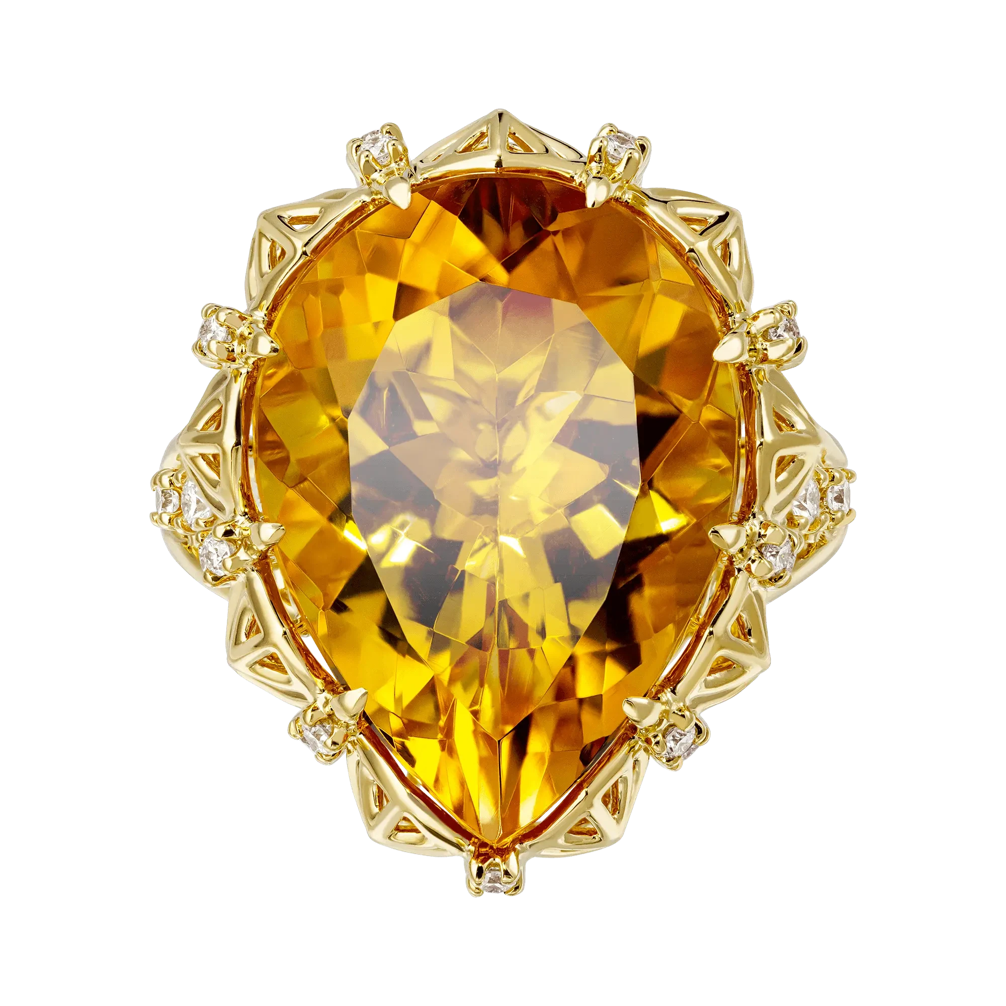 Центр удивительного шедевра ювелирного искусства венчает яркий цитрин, чья красота вызывает приятный трепет, доказывающий, что перед нами истинное природное чудо, виртуозно ограненное ювелирами и готовое дарить владелице эксклюзивного кольца «Сонцето» энергию для новых свершений.