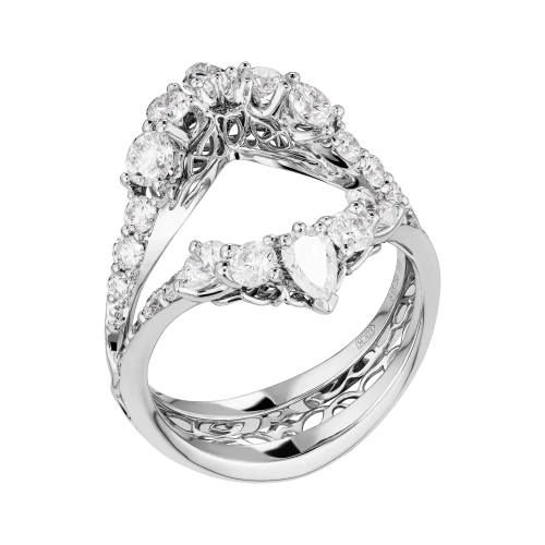 Белое золото, расшитое бриллиантами, становится фоном для внутреннего сияния, усиливая его звучание и добавляя образу светлой утончённости. «Таинственный нюанс» – это кольцо, в котором воплощена философия отношений и самой жизни: единство и свобода, союз и самостоятельность, свет и тень, переплетённые в гармонии.