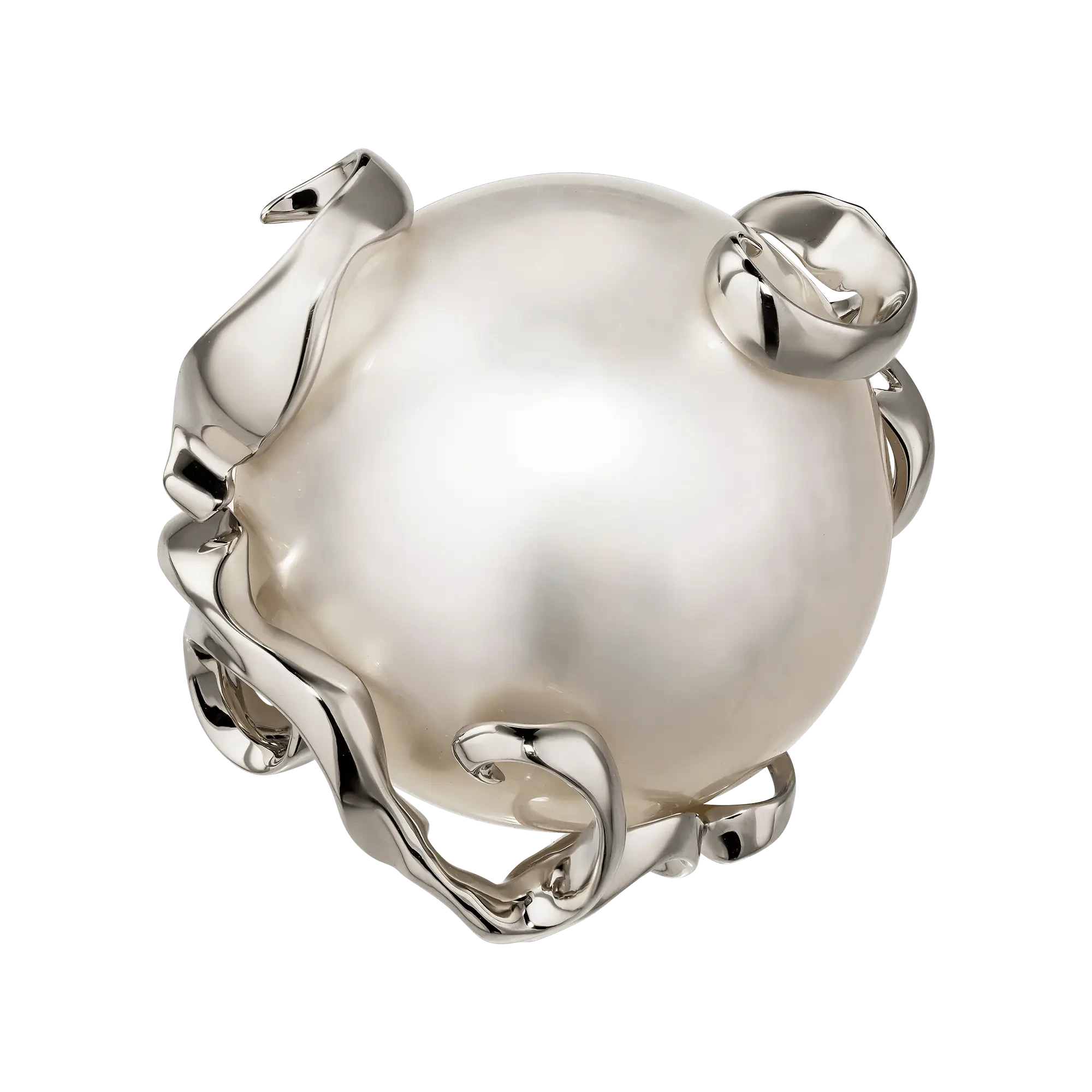 Доказывая, что жемчужные украшения не выдохлись за столетия популярности, а наоборот, снова вошли в моду, мастера Maxim Demidov сочинили благородное кольцо «В брызгах шампанского». Плавные формы, уникальная симметрия, редкий цвет природного сокровища весом 27,40 карат – перед нами очень эстетичный глянцевый пузырек, как будто летящий в высокохудожественном бокале из белого золота.