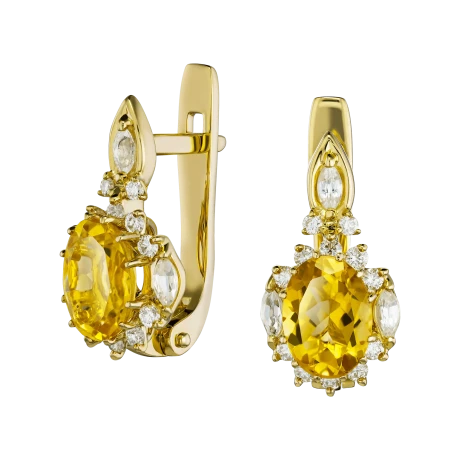 Серьги из желтого золота с натуральным цитрином и бриллиантами
