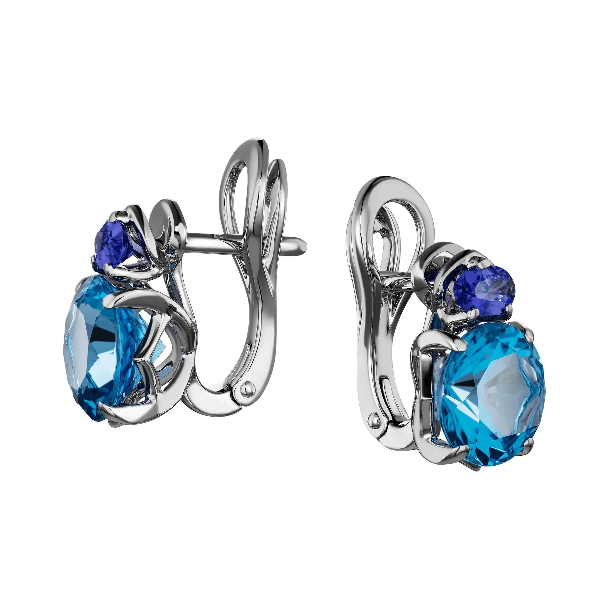 Сет царственных голубых топазов воплощают в себе чистоту и спокойствие озёрной глади, на которой покоится лунный свет. Его кристальная ясность несёт волнение и ожидание таинственных ночных историй, словно он заключил в себе чудеса неведомых тайн. Сияющие союзники центральных камней – соблазнительные танзаниты – укрепляют сочность композиции и ее искреннюю страсть к прекрасному. Их драгоценные отблески в мягких объятиях белого золота представляют собой мелодию мироздания, где каждое движение приносит новый куплет гармонии.