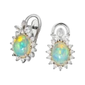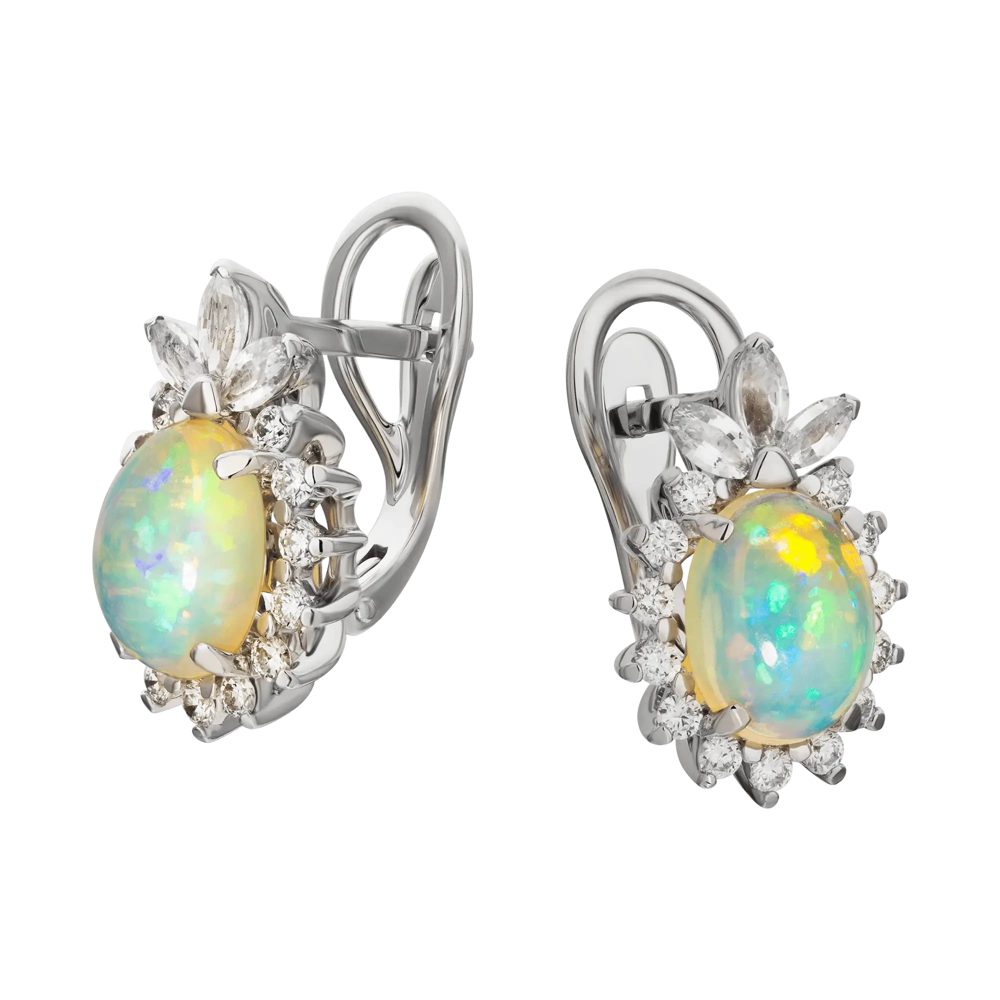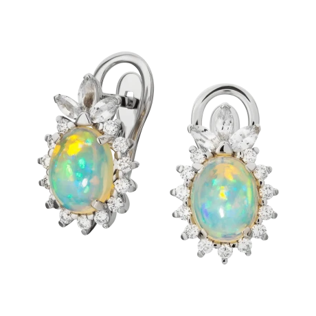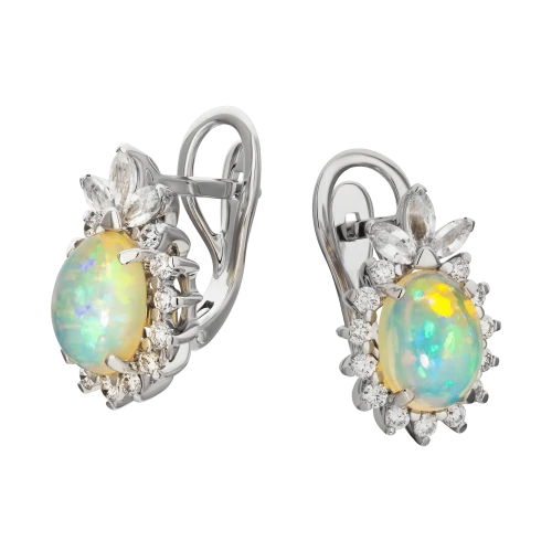 В центре композиции – дуэт эфиопских опалов, поражающих игрой оттенков и переливов. Их опалесценция рождает сотни тонких бликов – от лавандовых и бирюзовых до золотисто-розовых. Драгоценные камни словно живут в постоянном движении, отражая эмоции и настроение своей обладательницы.