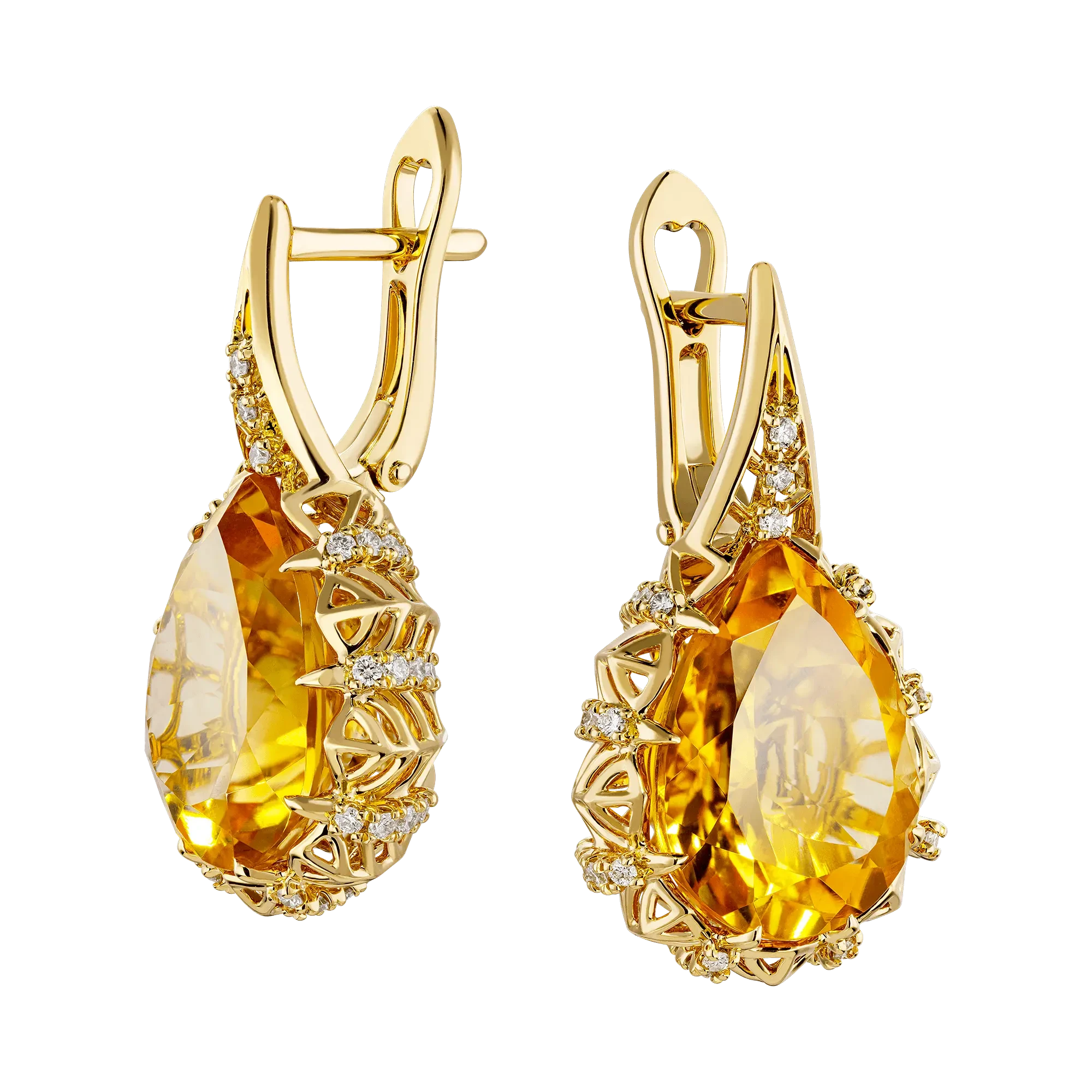 В притягательном образе украшения, созданного в соответствии с канонами роскошной классики, сразу выделяются два крупных цитрина, которые ювелиры мастерски обрамили завораживающим узором. Частью авторского ажура стала монограмма уральского бренда и многочисленные бриллианты, свежим блеском оттеняющие пылающую ярким светом глубину медового дуэта.
